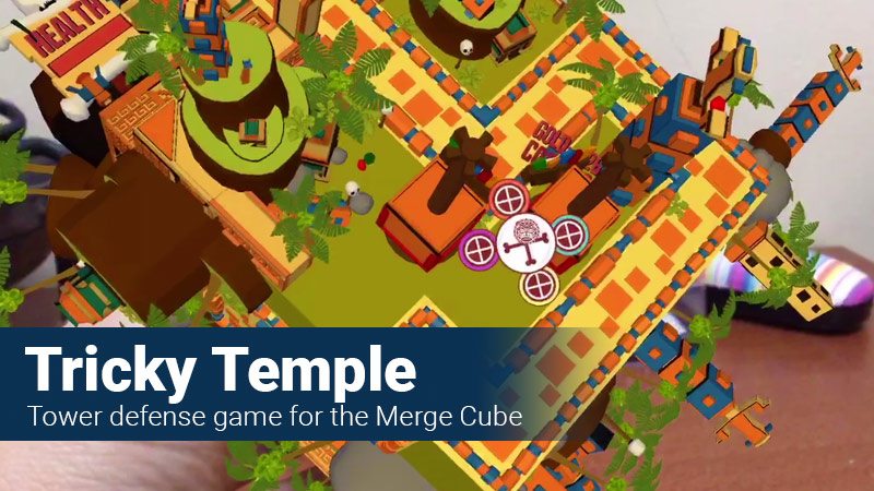 Tricky Temple is a tower defense game for the Merge Cube. Players need to choose different defense structures and put them in designated locations available on the map. The available structures are ones that do extra damage, slow down the enemy, increase the fire rate, allow enable multishot.